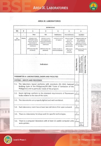 AREA IX. LABORATORIES Level 3 Phase 1 BS Entrepreneurship