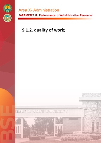 Area X- Administration PARAMETER H: Performance of Administrative Personnel S.1.2. quality of work;