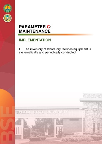 PARAMETER C: MAINTENANCE IMPLEMENTATION I.3. The inventory of laboratory facilities/equipment is systematically and periodically conducted.
