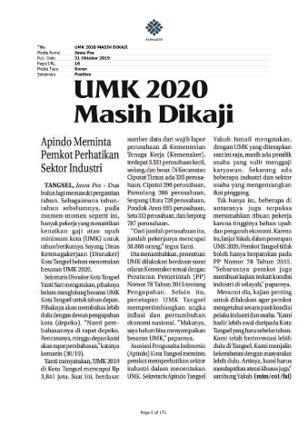 Title UMK 2020 MASIH DIKAJI Media Name Jawa Pos Pub. Date 31 Oktober 2019 Page/URL 16 Media Type Koran Sentiment Positive Page 5 of 173.