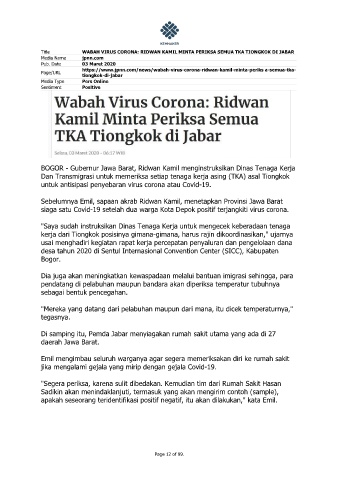Title WABAH VIRUS CORONA: RIDWAN KAMIL MINTA PERIKSA SEMUA TKA TIONGKOK DI JABAR