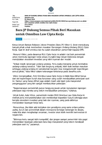 Title BARA JP DUKUNG SEMUA PIHAK BERI MASUKAN UNTUK OMNIBUS LAW CIPTA KERJA