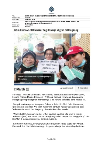 Title JATIM KIRIM 40.000 MASKER BAGI PEKERJA MIGRAN DI HONGKONG