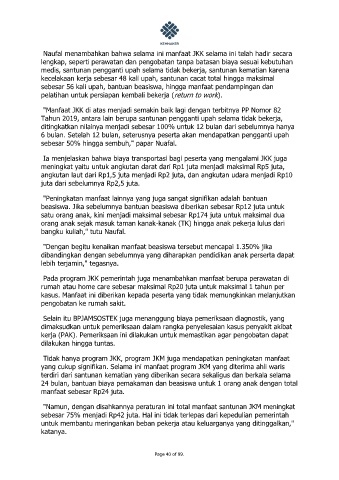 "Manfaat JKK di atas menjadi semakin baik lagi dengan terbitnya PP Nomor 82