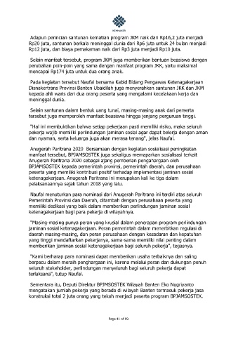 Adapun perincian santunan kematian program JKM naik dari Rp16,2 juta menjadi