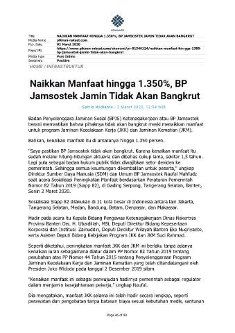 Title NAIKKAN MANFAAT HINGGA 1.350%, BP JAMSOSTEK JAMIN TIDAK AKAN BANGKRUT