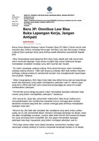 Title BARA JP: OMNIBUS LAW BISA BUKA LAPANGAN KERJA, JANGAN ANTIPATI