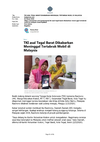 Title TKI ASAL TEGAL BARAT DIKABARKAN MENINGGAL TERTABRAK MOBIL DI MALAYSIA