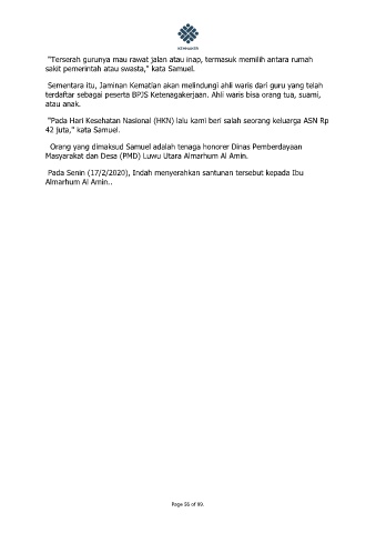 terdaftar sebagai peserta BPJS Ketenagakerjaan. Ahli waris bisa orang tua, suami,