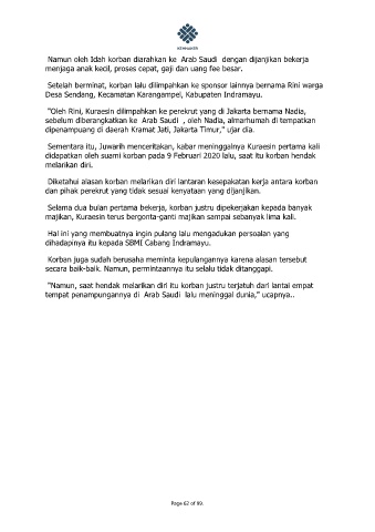 Namun oleh Idah korban diarahkan ke Arab Saudi dengan dijanjikan bekerja