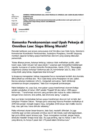 Title KEMENKO PEREKONOMIAN SOAL UPAH PEKERJA DI OMNIBUS LAW: SIAPA BILANG MURAH?