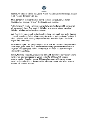 Dalam surat tersebut tertulis bahwa aksi mogok yang diikuti oleh Rizki sejak tanggal