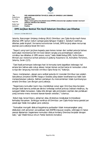 Title DPR JANJIKAN BENTUK TIM KECIL SEBELUM OMNIBUS LAW DIBAHAS