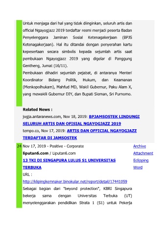 jogja.antaranews.com, Nov 18, 2019: BPJAMSOSTEK LINDUNGI