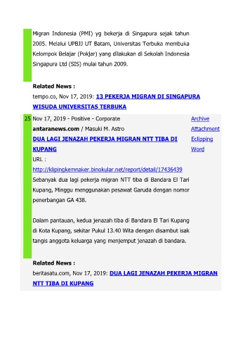 tempo.co, Nov 17, 2019: 13 PEKERJA MIGRAN DI SINGAPURA