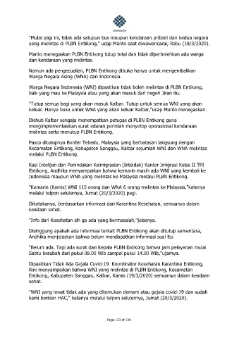 yang melintas di PLBN Entikong," ucap Manto saat diwawancarai, Rabu (18/3/2020).