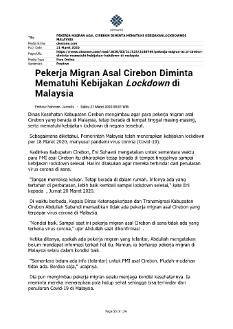 Title PEKERJA MIGRAN ASAL CIREBON DIMINTA MEMATUHI KEBIJAKANLOCKDOWNDI