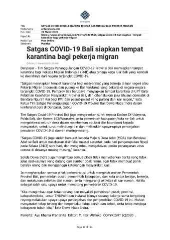 Title SATGAS COVID-19 BALI SIAPKAN TEMPAT KARANTINA BAGI PEKERJA MIGRAN