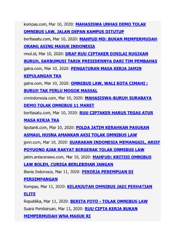 jatim.antaranews.com, Mar 10, 2020: MAHFUD: KRITISI OMNIBUS