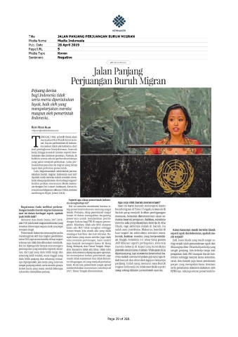 Title JALAN PANJANG PERJUANGAN BURUH MIGRAN Media Name Media Indonesia Pub. Date 28 April 2019 Page/URL 5 Media Type Koran Sentiment Negative Page 39 of 268.