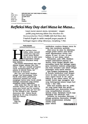 Title REFLEKSI MAY DAY DARI MASA KE MASA... Media Name Bisnis Indonesia Pub. Date 29 April 2019 Page/URL 22 Media Type Koran Sentiment Positive Page 7 of 268.