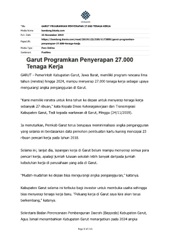 Title GARUT PROGRAMKAN PENYERAPAN 27.000 TENAGA KERJA
