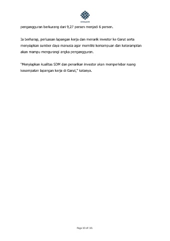 Ia berharap, perluasan lapangan kerja dan menarik investor ke Garut serta