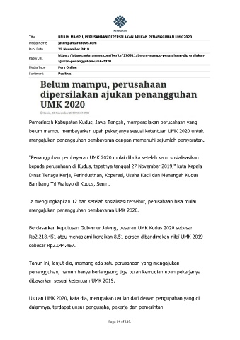 Title BELUM MAMPU, PERUSAHAAN DIPERSILAKAN AJUKAN PENANGGUHAN UMK 2020