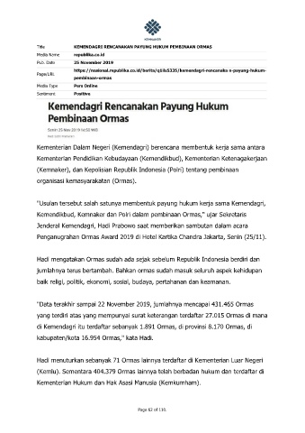 "Data terakhir sampai 22 November 2019, jumlahnya mencapai 431.465 Ormas