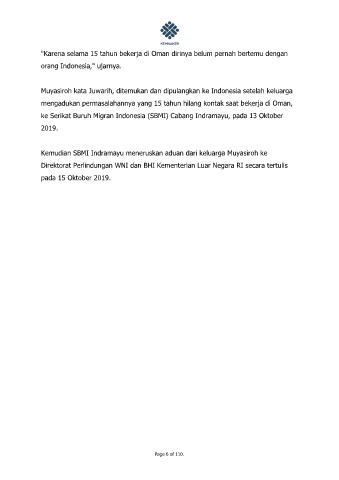 Kemudian SBMI Indramayu meneruskan aduan dari keluarga Muyasiroh ke