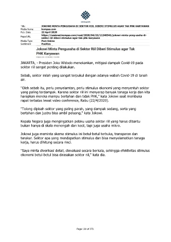 Title JOKOWI MINTA PENGUSAHA DI SEKTOR RIIL DIBERI STIMULUS AGAR TAK PHK KARYAWAN