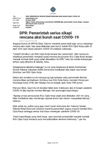 Title DPR: PEMERINTAH SERIUS SIKAPI RENCANA AKSI BURUH SAAT COVID-19