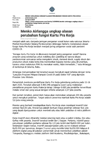 Title MENKO AIRLANGGA UNGKAP ALASAN PERUBAHAN FUNGSI KARTU PRA KERJA