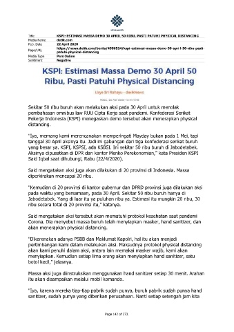 Title KSPI: ESTIMASI MASSA DEMO 30 APRIL 50 RIBU, PASTI PATUHI PHYSICAL DISTANCING