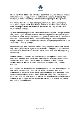Airlangga juga menjelaskan bahwa selanjutnya Kartu Pra Kerja tetap ada pelatihan