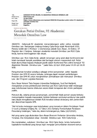Title GERAKAN PETISI ONLINE, 92 AKADEMISI MENOLAK OMNIBUS LAW