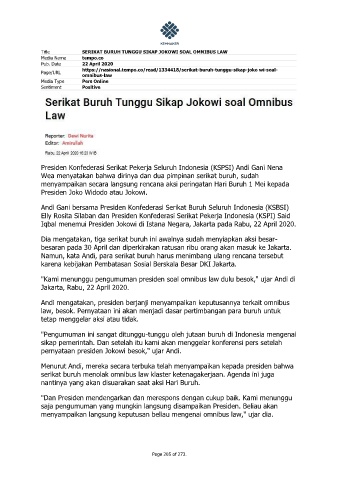 Title SERIKAT BURUH TUNGGU SIKAP JOKOWI SOAL OMNIBUS LAW