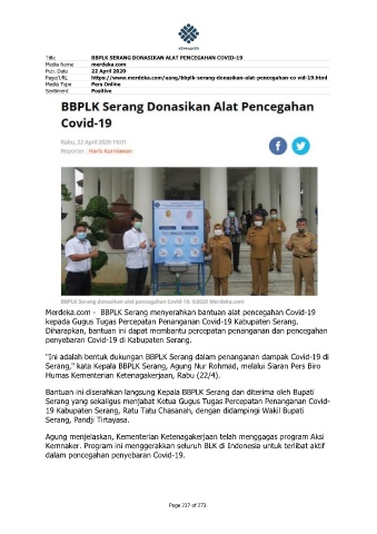Page/URL https://www.merdeka.com/uang/bbplk-serang-donasikan-alat-pencegahan-co vid-19.html