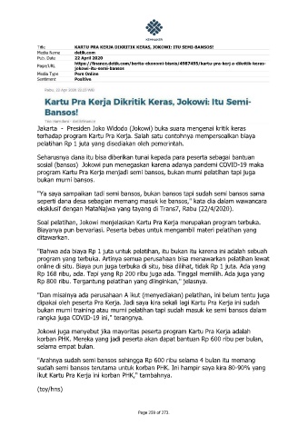 terhadap program Kartu Pra Kerja. Salah satu contohnya mempersoalkan biaya