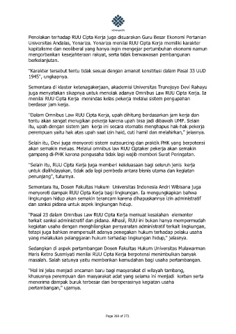 Universitas Andalas, Yonariza. Yonariza menilai RUU Cipta Kerja memiliki karakter