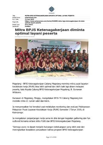 Title MITRA BPJS KETENAGAKERJAAN DIMINTA OPTIMAL LAYANI PESERTA