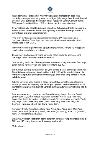 (BPBD) Langkat, jumlah korban kebakaran perakitan mancis Desa Sambirejo,