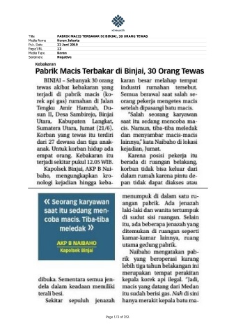 Title PABRIK MACIS TERBAKAR DI BINJAI, 30 ORANG TEWAS Media Name Koran Jakarta Pub. Date 22 Juni 2019 Page/URL 12 Media Type Koran Sentiment Negative Page 173 of 352.