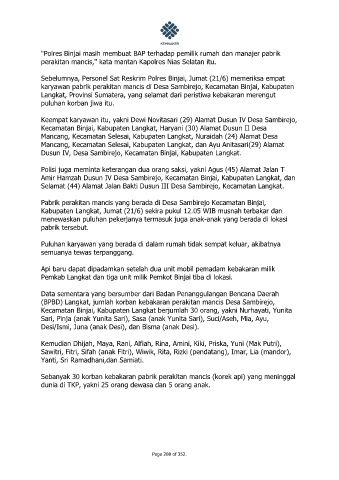 (BPBD) Langkat, jumlah korban kebakaran perakitan mancis Desa Sambirejo,