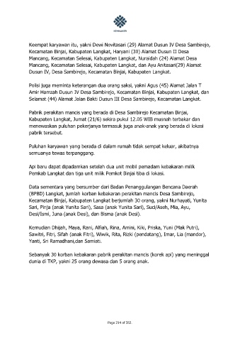 (BPBD) Langkat, jumlah korban kebakaran perakitan mancis Desa Sambirejo,