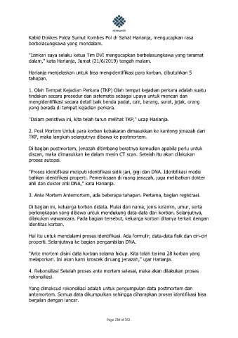 Harianja menjelaskan untuk bisa mengidentifikasi para korban, dibutuhkan 5