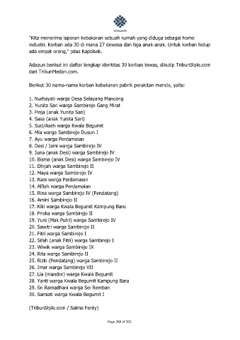 Berikut 30 nama-nama korban kebakaran pabrik perakitan mancis, yaitu: