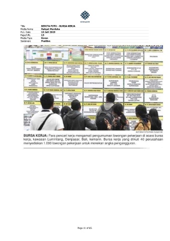 Title BERITA FOTO - BURSA KERJA Media Name Rakyat Merdeka Pub. Date 10 Juli 2019 Page/URL 13 Media Type Koran Sentiment Positive Page 11 of 65.