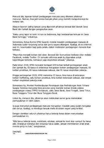 Sementara, Ketua Komisi KPAI Susanto menilai masalah perdagangan manusia di