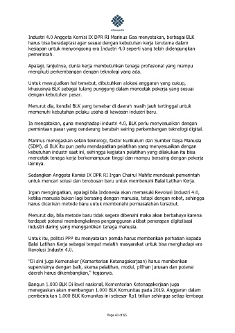 Industri 4.0 Anggota Komisi IX DPR RI Marinus Gea menyatakan, berbagai BLK
